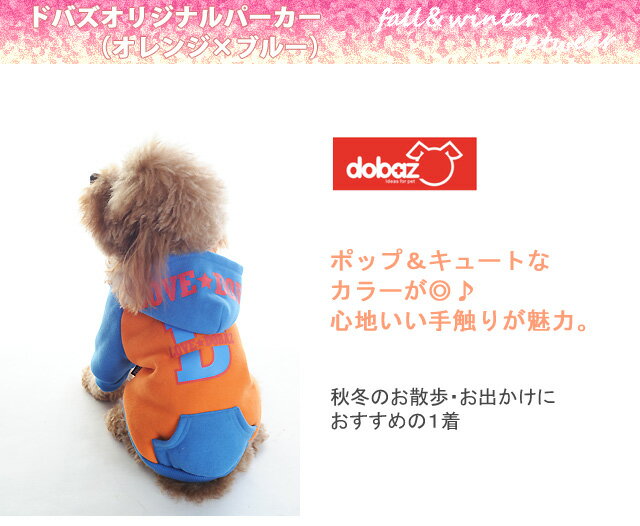 【メール便可】DOBAZ(ドバズ) 秋冬 ドバズオリジナルパーカー (オレンジ×ブルー)ドッグウェア(XSサイズ)【Q】