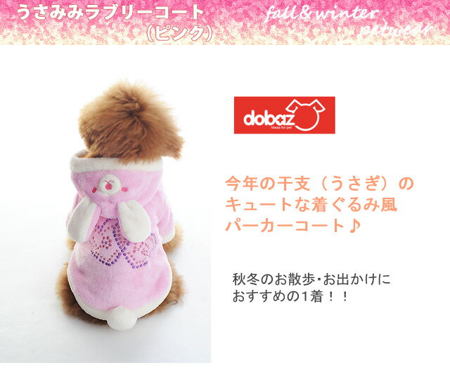 【メール便可】DOBAZ(ドバズ) 秋冬 うさみみラブリーコート (ピンク) ワンコ服 犬服 ドッグウェア(Sサイズ)【Q】