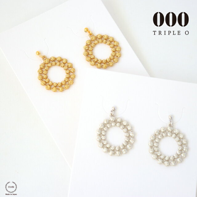 000 TRIPLE O トリプル オゥ ピアス レディース ドイリー ピアス キュプラ メタリック 刺繍 糸玉 両耳用 スタッド アクセサリー <Doily (P)> (ER010P) 【ネコポス対象】