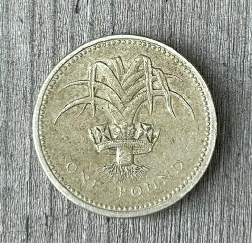 1985 年の 1 ポンド硬貨の逆さまのエッジ レタリング