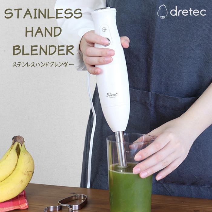 ● dretec ドリテック ステンレスハンドブレンダー HM-813 ハンドミキサー 1台3役 つぶす まぜる 泡立てる 離乳食 ポタージュ スムージー 生クリーム 泡立て器 時短調理 強力 ハイパワー 小型 軽い 食洗機OK 家電 調理家電 キッチングッズ 正規品 ギフト プレゼント