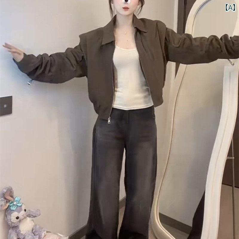 レディース ジャケット きれいめ カジュア アメリカ レトロ 茶色の 機関 車 短い ジャケット レディース 春秋 ゆったりした 高級 感が。