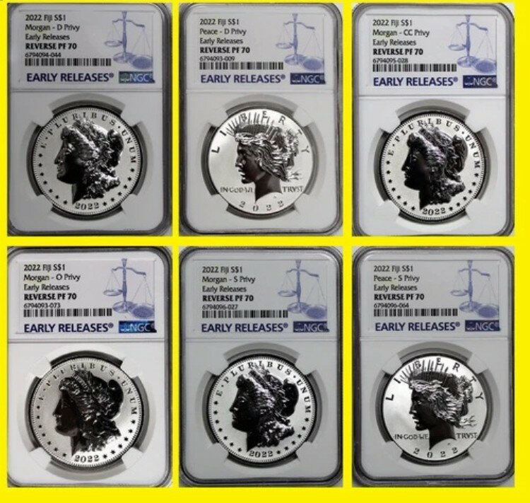 2022年 モーガン&ピースドル 6枚セット NGC RV PF 70 アーリーリリース 発行 ミント3.5k