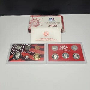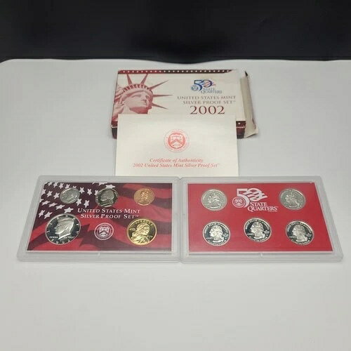 2002年米国造幣局発行のシルバープルーフセット(箱とCOA付き、10枚セット(2枚))