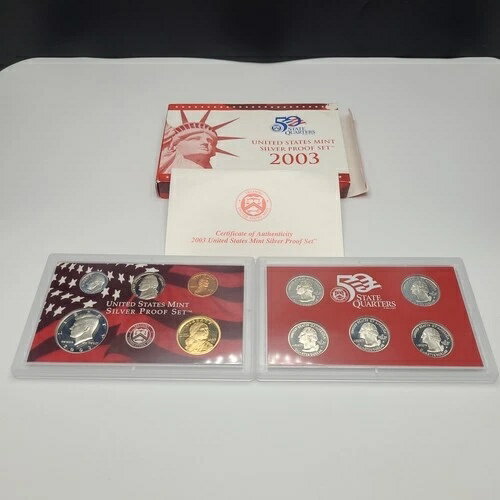 2003年米国造幣局発行のシルバープルーフセット(箱とCOA付き、10枚セット(2枚))