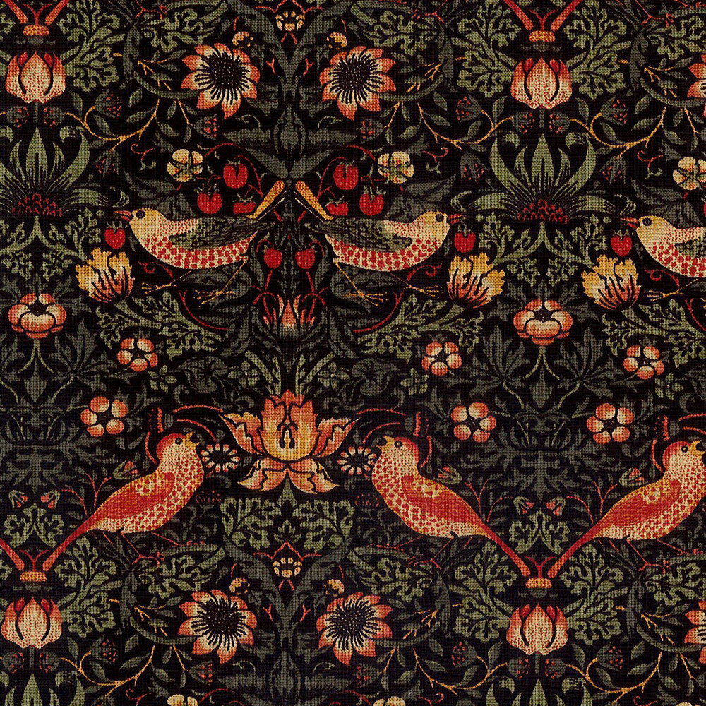 moda fabrics(モダ・ファブリックス)William Morris ウィリアムモリス シーチング生地<STRAWBERRY THIEF 1883>(ストロベリーシーフ)EBONYエボニー 33490-17