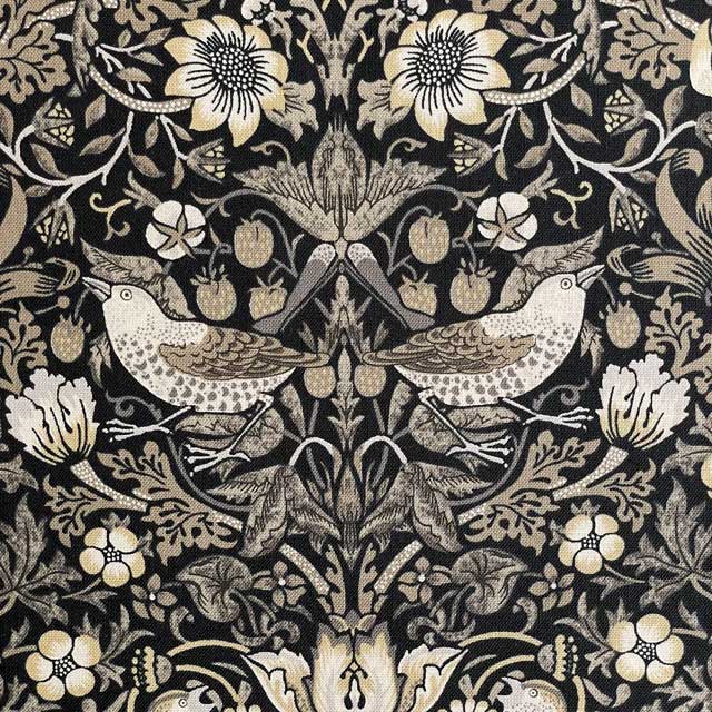moda fabrics(モダ・ファブリックス)William Morris ウィリアムモリス シーチング生地<Strawberry Thief>(ストロベリースィーフ)いちご泥棒 EBONY エボニー 8382-16