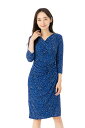 エジェリ(EGERIE)ワンピース T1 T2 T3サイズ 七分袖 膝丈ワンピース 総柄 カシュクール ジャージー素材 レディース フランス製 大人ワンピース 上品 エレガント 着やせ