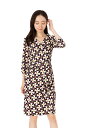 「エジェリワンピース」 EGERIEワンピース T1 T2 T3サイズ 七分袖 膝丈ワンピース リーフ柄 カシュクールネック ジャージー素材 レディース