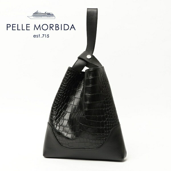 ペッレモルビダ PELLE MORBIDA クロコ型押し x シュリンクレザー ハンドルバッグ ブラック mb074ele-bl 100