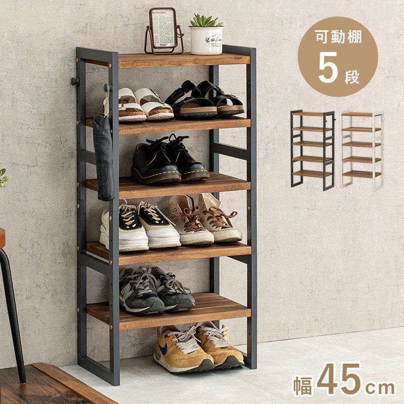 シューズラック 簡単 おしゃれ 玄関 幅45cm 高さ92cm オープンラック 可動棚 5段 スリッパ収納 木製 靴箱 下駄箱 シューズボックス スリム 省スペース 木目 大容量 エントランス MSS-6710