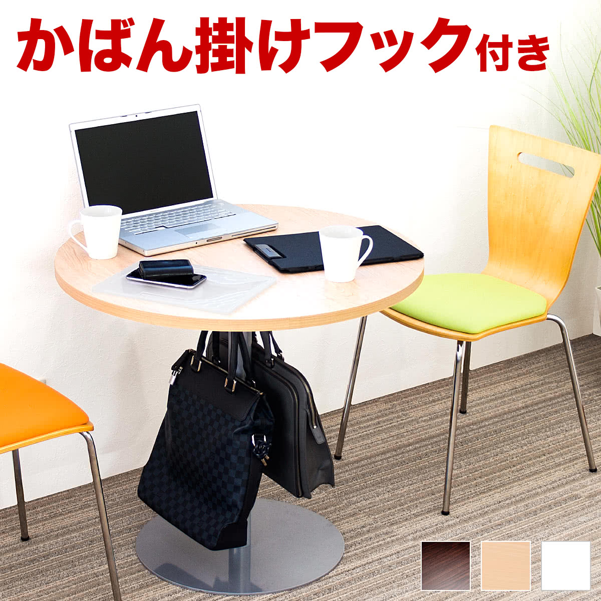 ミーティングテーブル 幅75cm 休憩所テーブル ロビーテーブル オフィス 打ち合わせテーブル 丸いテーブル 荷物掛け 1本足 ラウンジテーブル 円形テーブル エントランステーブル 商談テーブル