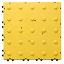 バリアフリー新法に対応 製品データ 商品名 ニューガイドマットB B-P(警告) 300×300 Y 品番 F-189-P サイズ 300×300mm 重量 約580g 厚み 約24mm 色 イエロー 材質 ベース:再生PE、トップ:EVA