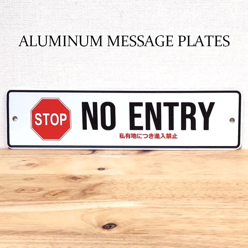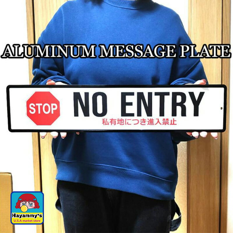 メッセージプレート 看板 お店 進入禁止 STOP アルミニウム NO ENTRY おしゃれ メッセージサイン アメリカン 雑貨 ショップ かっこいい 壁飾り ディスプレイ インテリア カフェ 店舗 バー