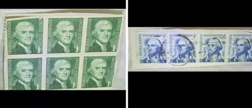 トーマス・ジェファーソンの未使用1セント切手6枚セットと使用済み5セントウォッシュ切手4枚セット