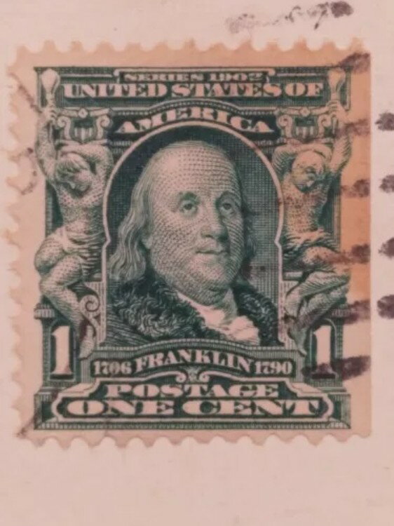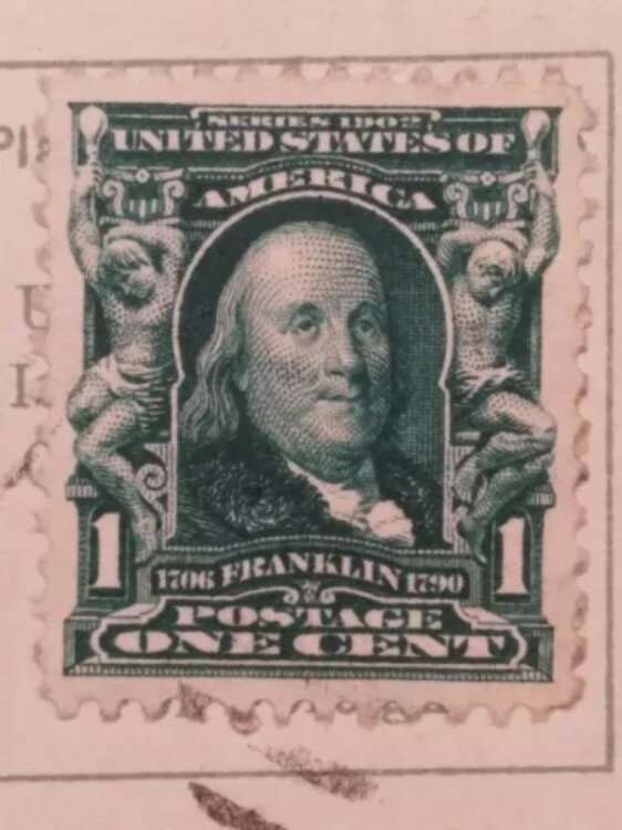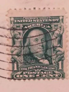 ベンジャミン・フランクリン(1901-1908)1セント切手(緑色)。未使用。非常に希少。