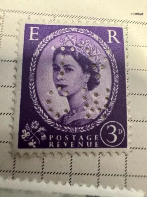 希少なエリザベス2世女王 1959年 郵便切手 3d 紫 未使用 Perfin TVCW