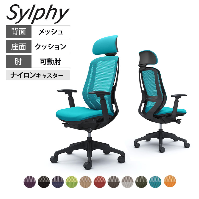 オカムラ シルフィー C68EXS カラーコード対照表FMP0(パープル)FMP1(ブラック)FMP3(ミディアムブルー)FMP5(ライムグリーン)FMP7(ベージュ)FMP9(レッド)FMR2(ミディアムグレー)FMR3(ライトグレー)FMR5(ダークグリーン)FMR6(ブルーグリーン)FMR8(オレンジ)オカムラ シルフィー オフィスチェア エクストラハイバック 可動ヘッドレスト 可動肘 背メッシュ ブラックボディ 樹脂脚 ランバーサポート付き ナイロンキャスター sylphy C68EXS 商品について サイズ外寸 / 幅648×奥行574〜624×高さ1157〜1257mm(脚部除く)肘高さ / 620〜820mm座面高さ / 420〜520mm脚 / 直径696mm 重量18.75kg 材質背フレーム / 樹脂成型品肘 / 樹脂成型品座シェル / 樹脂成型品脚 / 樹脂成型品キャスター / 直径60mmナイロン双輪キャスター ボディカラーブラック 背メッシュ 肘可動肘 脚樹脂ブラック キャスターナイロンキャスター 機能・特徴・可動ヘッドレスト(上下100mm、角度35度)・バックカーブアジャスト機構 背もたれのカーブを2段階で調節可能・前傾機能付き背座シンクロリクライニング 角度 / 33度(前傾10度、後傾23度) 4段階固定可能 強弱調節可能・ランバーサポート高さ調節(ストローク60mm)・アジャストアーム(上下100mm、前後50mm、内側20度、外側20度)・座面高さ調節(ストローク100mm)・座面奥行調節(ストローク50mm) 生産国日本 梱包数1箱 梱包サイズ幅710×奥行675×高さ1220mm 梱包重量22.75kg 保証について1〜8年保証(部位により保証期間が変わります)※社団法人日本オフィス家具協会(JOIFA)規定に基づく※詳しくはこちらの保証ページをご確認ください。 組み立て完成品 備考・異硬度クッション 座面前方は太ももを圧迫しないように柔らかく、後方はお尻をしっかりサポートする硬めのクッションを採用。・グリーン購入法適合商品 配送について ご注意この商品はメーカー直送便にてお届けします。配送時のお客様不在による持ち帰りが発生した場合、別途再配達費用を頂戴いたします。配送詳細については必ずこちらをご確認ください。 お届け日についてお届け日(発送予定)は在庫がある場合の最短納期表示です。在庫切れの場合、ご注文確定後の受注生産となり、お届けまで1カ月以上お待ちいただく場合がございます。また、配送日のご連絡につきましてご案内にお時間がかかる場合がございます。予めご了承ください。 配送費用について配送費無料。離島は別途お見積り。 階上げ(階下げ)についてAパターン ※こちらの詳細をご確認ください。 引き取りサービスについて【法人様限定】 引き取りサービス ※こちらの詳細をご確認ください。※ご希望の場合は、ご注文時の備考欄にご記入ください。 組み立て・設置付きについてこちらの商品は完成品設置付きでのお届けとなります。※開梱・梱包材回収まで無料で行います バリエーション