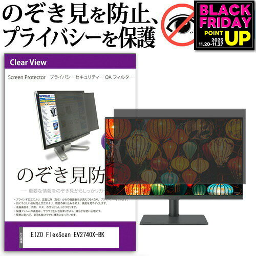 【ポイント2倍】EIZO FlexScan EV2795 27インチ 対応 覗き見防止 フィルター プライバシーフィルター パソコンPC モニター 液晶保護フィルム 覗き見防止シート ブルーライトカット 反射防止 セキュリティーのぞき見防止 両面使用可能 着脱簡単 JPフィルム専門製造所