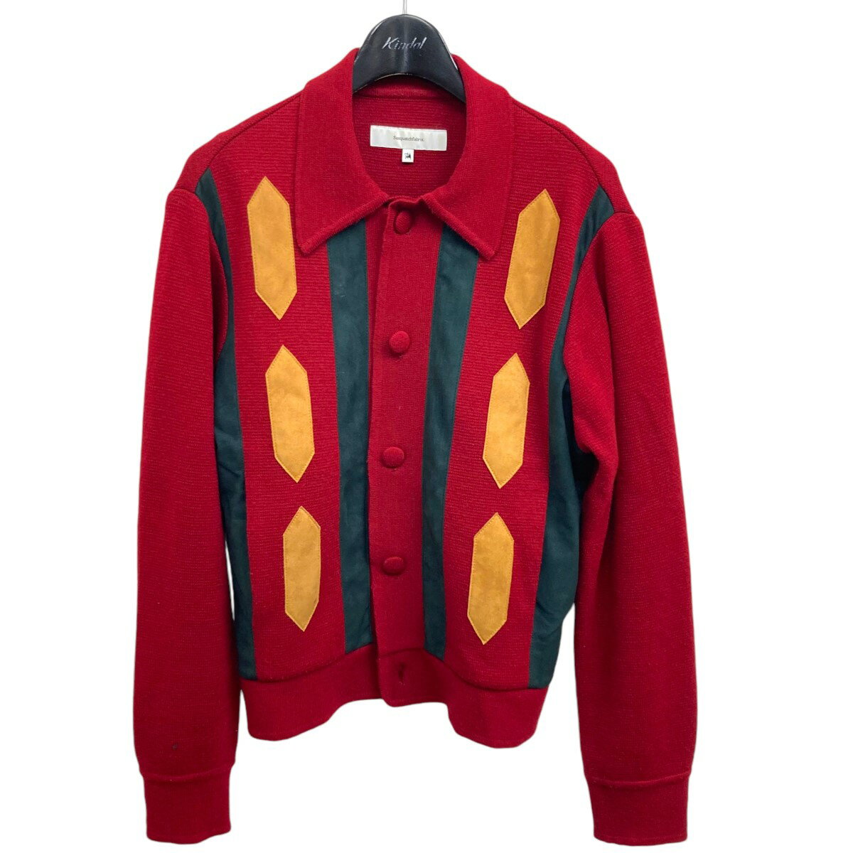 【中古】SASQUATCHfabrix.22AW FAUX SUEDE RASTA KNIT CARDIGAN ニットカーディガン レッド サイズ:S【価格見直し】
