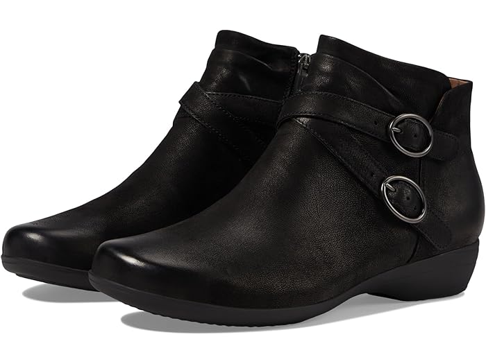 【送料無料】 ダンスコ レディース ブーツ・レインブーツ シューズ Faithe Leather Buckle Detail Block Heel Ankle Booties Black Burnished