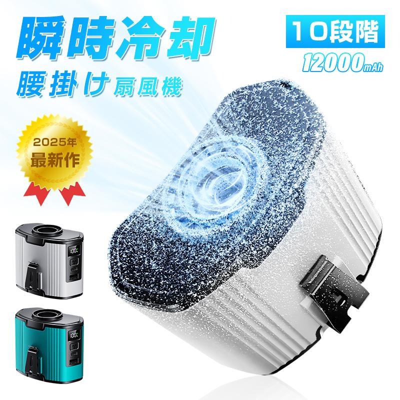 腰掛け扇風機 多機能 12000mAh大容量 2025年新モデル 首掛け 腰かけ モバイルバッテリー機能 iPhone16/15充電 10段階風量 ストラップ付 熱中症対策 Type-C充電