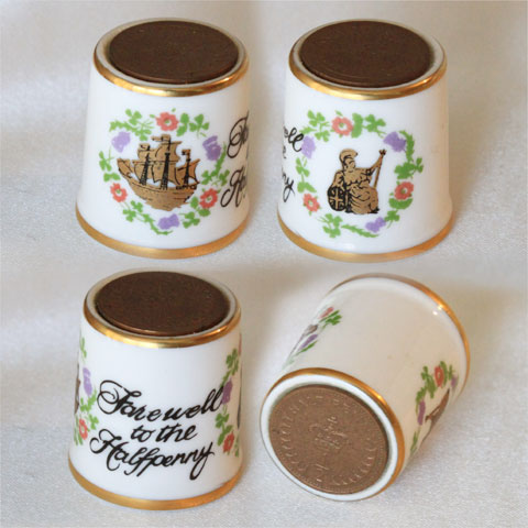 ハーフペニーにサヨナラ Farewell to the Half penny イギリスの通貨 1/2ペニー コイン 終了記念発行 ブリタニア女神と帆船 サザーランド Sutherland シンブル 指貫き 限定発行 スワロフスキー クリスタル トップ ソーイング コレクション アイテム プレゼント P16Sep15