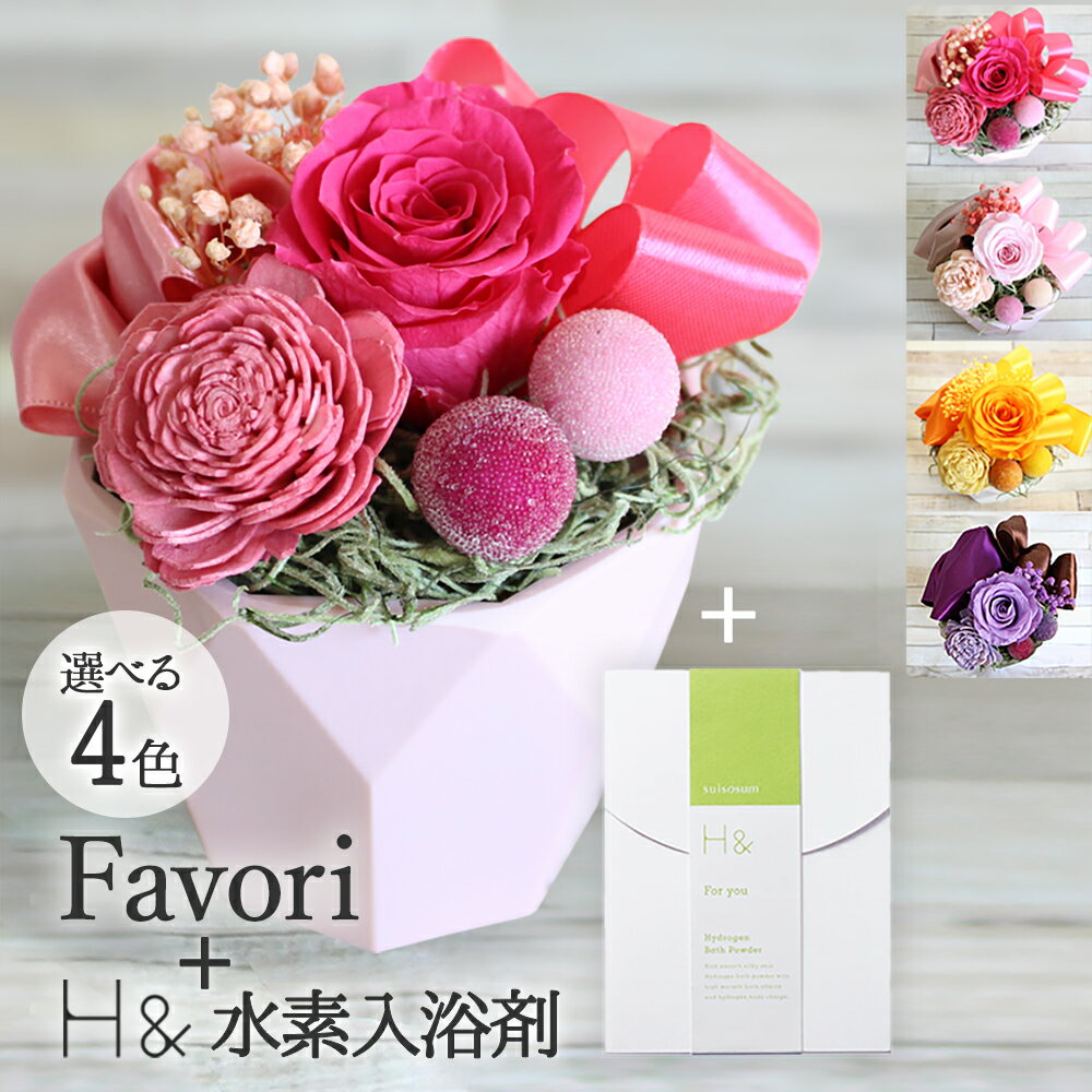 【最短翌日配達★15時〆】プリザーブドフラワー Favori H& 水素入浴剤 セット ハロウィン 七五三 いい夫婦の日 プレゼント 花 入浴剤セット ギフト 結婚祝い 写真印刷無料 バラ 誕生日 お祝 内祝 メッセージ 写真入り ケース入り