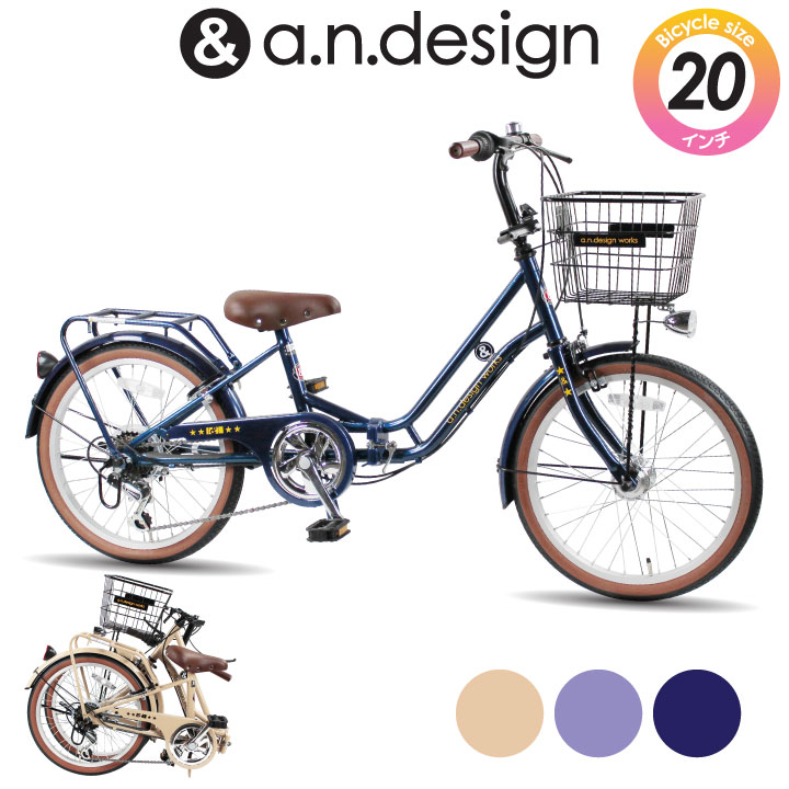 カラー ライトヴァイオレット、ダークブルー、ミルクティー 乗車めやす 身長118〜150cmくらい メーカー希望小売価格はメーカーサイトに基づいて掲載しています子供だってもっとおしゃれにかわいく♪ 子供用折りたたみ自転車というアンドからの新提案。低学年から高学年まで乗車可能な設計をしています。 20インチだけど、20〜24インチ相当をこの一台て網羅。小学生時代はこの一台で! (個人差は御座います) ちゃんと安全に。でもおしゃれに。 HD(ハブダイナモ)LEDオートライト、ローラーブレーキなど安全対策もピカイチ。キッズバイクに絶対必要な後輪錠、ベル、スタンド、リフレクター(反射板)など便利はしっかりと。さらにびょう付きサドル、パイプキャリア、ワイヤーカゴなどなどおしゃれでかわいいコトをこれでもか!っと詰め込んでいます。おしゃれも、ちゃんと安全も。 びっくりするくらい子供にマッチする 女の子にも男の子にもバッチリ似合う、可愛いカラーをたくさんご用意しました。どのカラーも各部までデザインされ、全てがメインカラーです。 SPEC フレーム スチール製折りたたみタイプ ハンドルバー フラットタイプ ブレーキ [フロント] キャリパーブレーキ [リア] ローラーブレーキ 変速 SHIMANO製 外装6段 シフター SHIMANO製 グリップシフター ライト LEDオートライト フロントバスケット ワイヤーバスケット サドル びょう付ソフトサドル タイヤ 20×1 3/8 あめ黒 英式バルブ スタンド サイドスタンド その他の装備 後輪錠/ベル/リアリフレクター/ホイールリフレクター 車重 約17kg 乗車のめやす 身長118cm~150cmくらい カラー ライトヴァイオレット、ダークブルー、ミルクティー 製造時期、品質向上などにより、製品の仕様は予告無く変更されることがあります。 掲載画像はできる限り現品と同じになる様努めておりますが、ご使用の環境により色合いが異なって見える場合があります。 サイズ違いで同一デザイン・仕様の商品については、画像を共用している場合があります。 【福山通運 営業所リスト】はコチラから