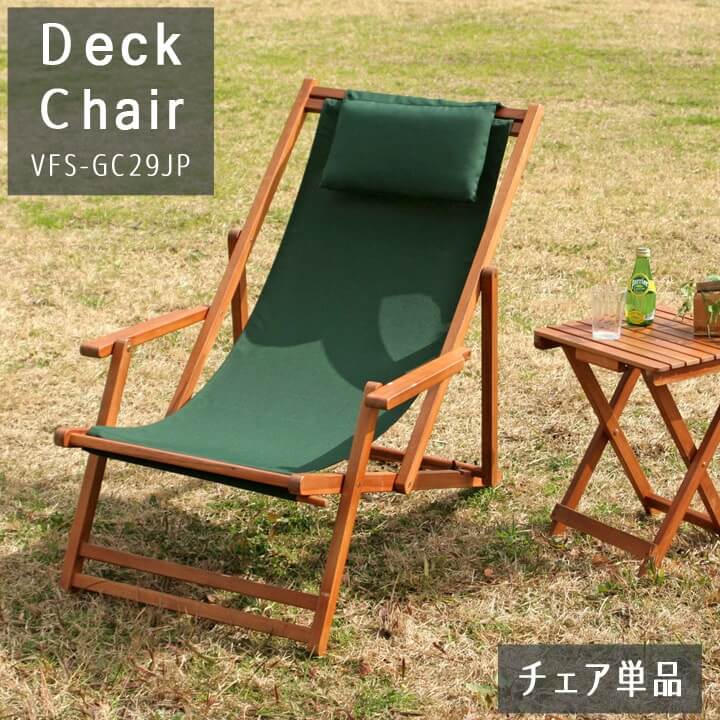デッキチェア VFS-GC29JP サイズ 全体:64.5×101〜110×79〜89cm カラー グリーン 素材 アカシア材(オイルステイン仕上げ) 生産 ベトナム ●のんびりと余暇を過ごすデッキチェア ・のんびりくつろげるデッキチェアです。ベランダやデッキでのお昼寝、くつろぎの場としてどうぞ。 ・背もたれは3段階の角度を調節できます。 ※劣化やカビの原因となりますので、長期間の屋外での使用は避けてください。 ※一般家庭での使用を想定して設計しております。 ※北海道・沖縄・離島へのお届けは別途送料をいただく場合がございます。予めご了承のほどお願いいたします。 # 商品の色合いは、お使いのパソコンの機種やモニターの設定によって多少異なる場合がございます。▼・・・・・・そんなデッキチェア「VFS-GC29JP」はこちら・・・・・▼
