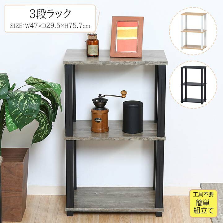 3段ラック[fbc] 幅47x奥行29.5x高さ75.7cm 3段 ラック 工具不要 簡単 組立て 収納 ディスプレイ リビング ダイニング 寝室 子供部屋 整理 オープンラック ホワイト ブラウン ブラック