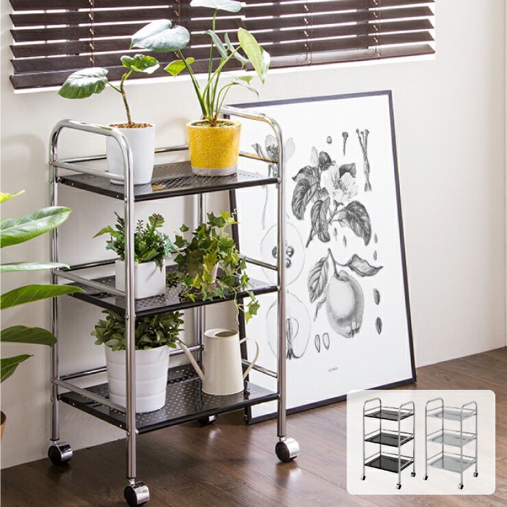 マルチワゴン 3段 キッチンワゴン キッチン収納 台所 食器棚 ラック キッチン キャスター付き キャスター ワゴン レンジワゴン ブラック(代引不可)【送料無料】【smtb-f】