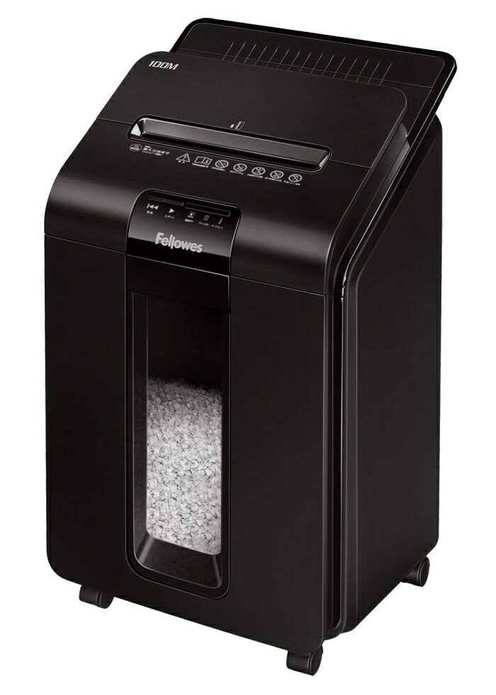 【在庫限即納】FELLOWS フェローズ 100M 電動シュレッダー クロスカット 最大幅:A4 最大枚数:10枚以下 21L〜30L ホッチキス可 ブラック