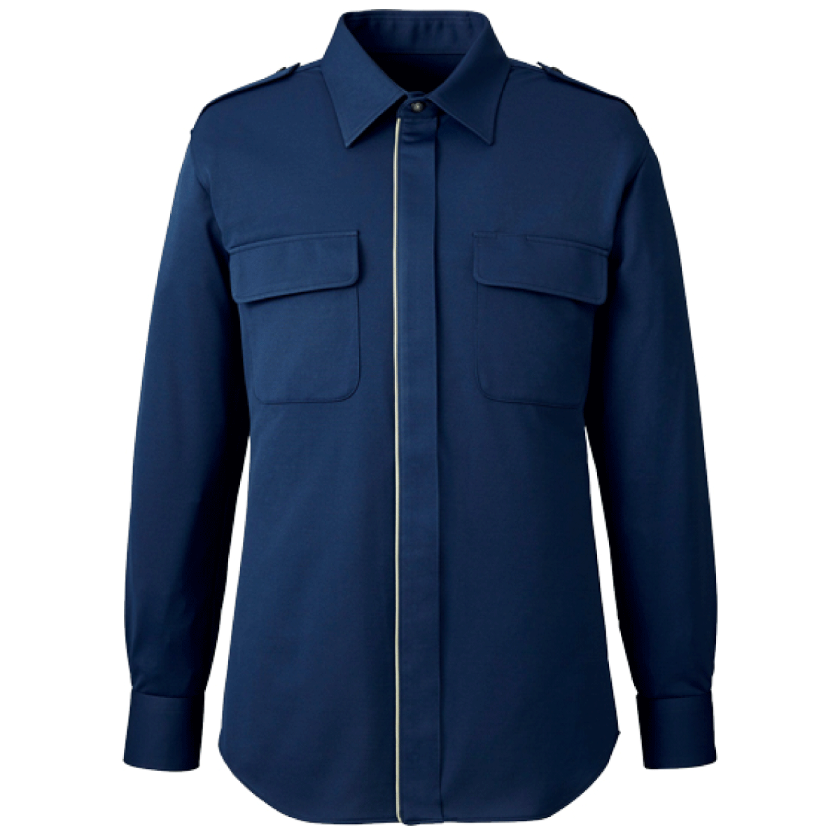 肩章付き 長袖シャツ 安全性を考えた肩章反射テープ 肩章下に反射テープを装着。 夜間の警備の安心感を高めます。 【MATERIAL】 エコペット®セルガード®ストレッチトロピカル ポリエステル60%・綿40% ◇再生ポリエステル60%使用 ■エコマーク ■帯電防止 ■ストレッチ 【COLOR】 ■サックス 【SIZE】 ■S/M/L/LL/3L/4L/5L