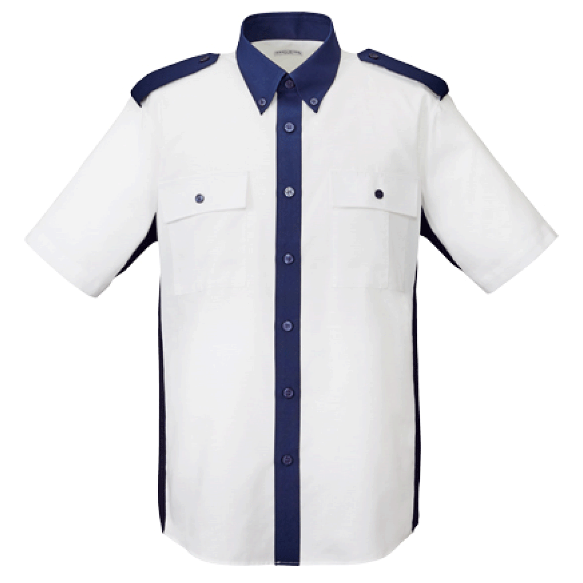 肩章付き 半袖シャツ 【MATERIAL】 エコペット®セルガード®ストレッチトロピカル ポリエステル60%・綿40% ◇再生ポリエステル60%使用 ■エコマーク ■帯電防止 ■ストレッチ 【COLOR】 ■ホワイト 【SIZE】 ■S/M/L/LL/3L/4L/5L