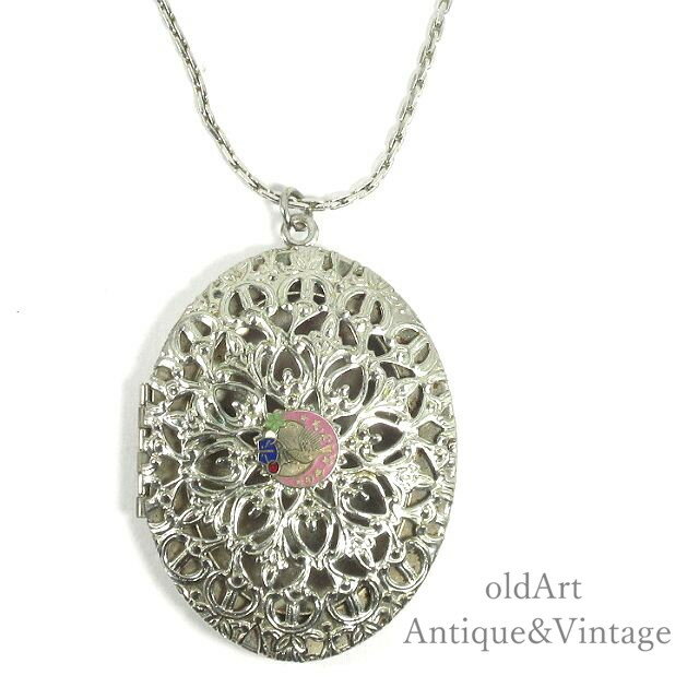 USA製 ヴィンテージ 1950-60年代 Odd Fellows オッドフェローズ レディース シルバー ロケット 透かし細工 ペンダント ネックレス【N-23731】【中古】