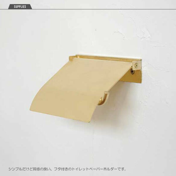 flap paper holder brassシンプルだけど質感の良い、フタ付きのトイレットペーパーホルダーです。 平面的なプレートを折り畳んで造形したようなフォルムは、お手洗い空間にスタイリッシュさを演出します。紙押さえのフタ付きタイプは、小さな子供がいるご家庭や来客の多いお家でも安心してお使い頂けます カラー ゴールド サイズ W135mm×D111mm×H30mm 素材 真鍮 付属 取り付け用の真鍮製ビス付属 在庫についてのご注意 こちらの商品は他店と在庫の共有をしている為、在庫数が随時、変動しております。 ご注文時に在庫ありの商品でも、当店がご注文確認後にメーカーに発注する時点で欠品になってしまう場合がございます。 また、銀行振込など前払いのお支払方法をご利用の場合に、当店では入金後に発注を行っております。ご入金をお待ちしている期間に商品が欠品になってしまう場合がございます。 必ずご注文の時点で在庫があることを確認した上でご連絡をしておりますが、メーカーが取り置きに対応していないため、在庫確保を保証するものではございません。 誠に恐れ入りますが、予めご了承くださいますようお願いを申しあげます。