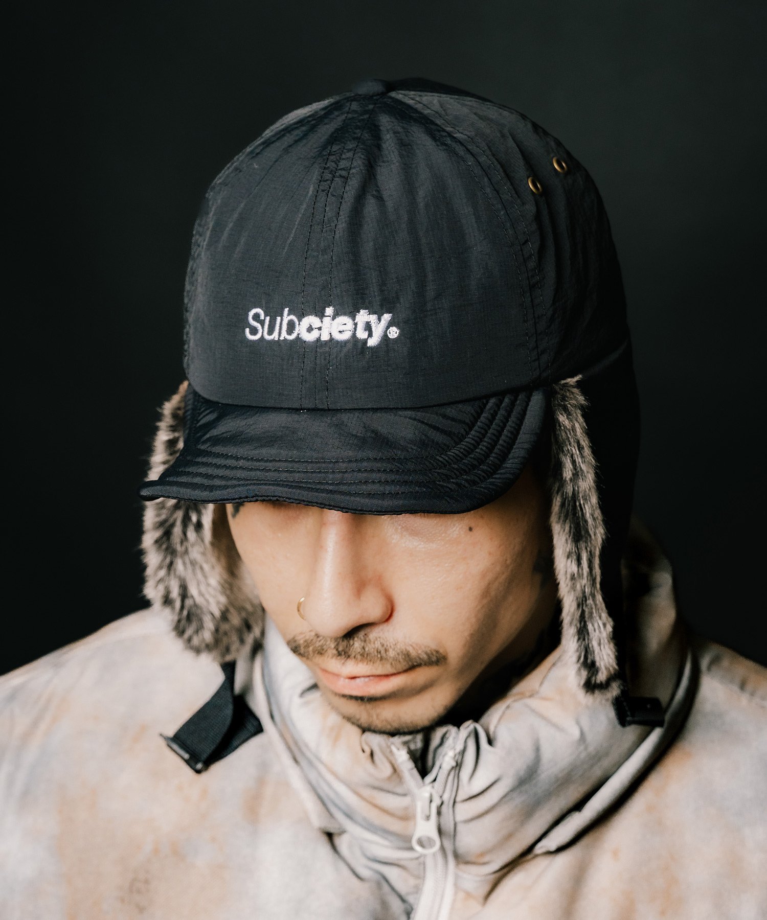 Subciety Nylon flap cap サブサエティ 帽子 キャップ ブラック グリーン【送料無料】