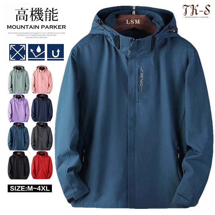 M~5XL マウンテンパーカー メンズ レディース 男女兼用 ジャケット レッキングジャケット 登山 アウトドア 防風 撥水加工 アウター メンズファッション フード付き フード脱着可 TK-S