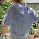 jk レディース 韓国ファッション アウター ジャケット 長袖 フード付き クロップド ストライプ柄 ストリング 薄手 紫外線対策 透ける プチプラ カジュアル 春 夏 v90001