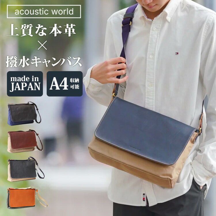 【20周年!最大5000円クーポン配布中】acoustic world アコースティックワールド FRANK フランク ショルダーバッグ Sサイズ 日本製 本革 帆布 メンズ レディース ユニセックス 牛革×キャンバス 防水 撥水 aw00201