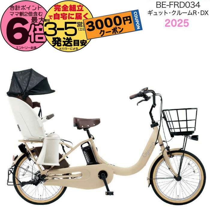 【3000クーポン&最大6倍】送料無料 ※一部地域限定 ギュット・クルームR・DX・20 BE-FRD034 3人乗りセット 2025年モデル パナソニック 20インチ 16Ah GYUTTO ギュットクルーム 電動アシスト自転車 電動自転車 子乗せ自転車 防犯登録無料