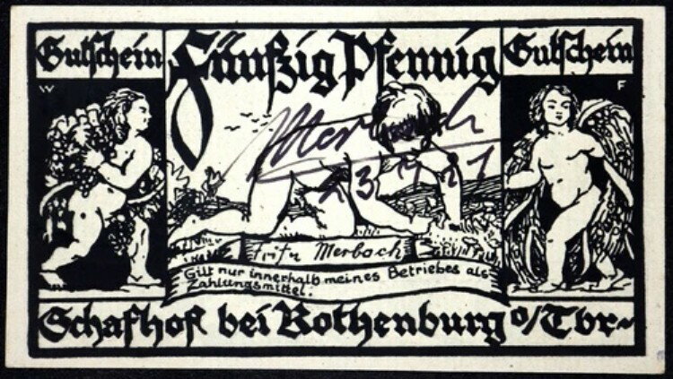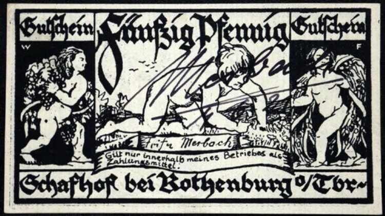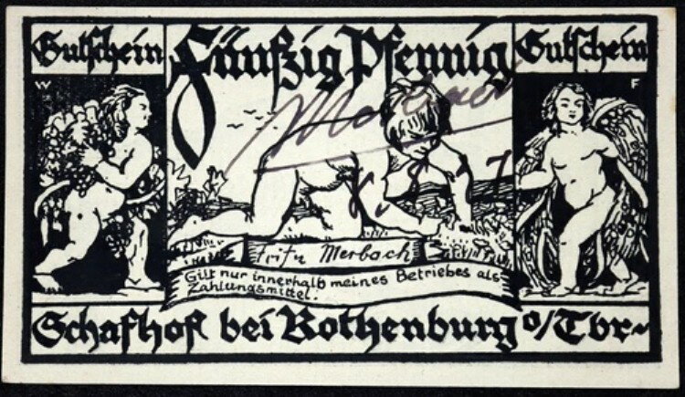 ローテンブルク 1921 XX-レア 直筆サイン入り! 『フリッツ・メルバッハ:シェーフェルタンツ』 50 Pf Notgeld