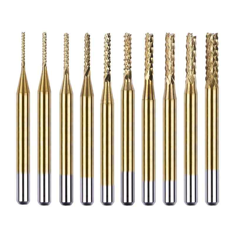 Saipor 10個セット エンドミルセット チタンコーティング セメントカーバイド フライスカッター 1/8インチシャンク 超硬 彫刻ドリルビット PCB 精密加工 CNC ルータービット (0.8-3.175 mm)