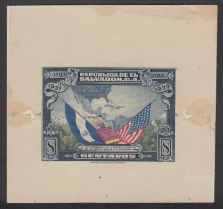 エルサルバドル 1938年 アメリカとエルサルバドルの国旗 Sc 572 ダイプルーフ 未使用 F、VF 希少