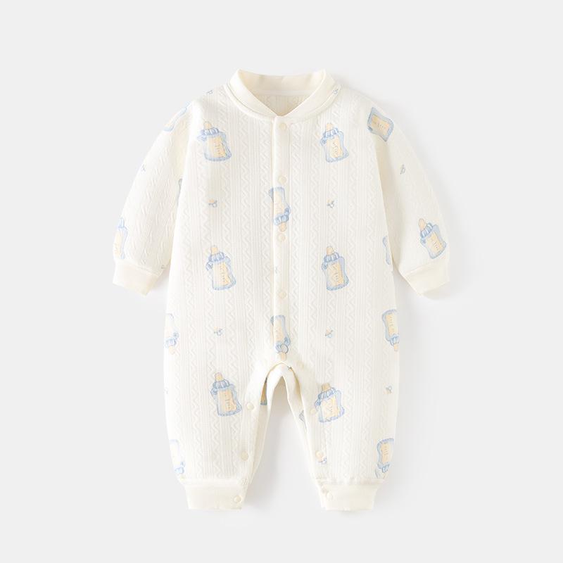 ロンパース ベビー 新生児 男の子 女の子 男女兼用 前開き スナップボタン 厚手 中綿入り キルティング 暖かい 保温 綿100% 縫い目なし 肌に優しい 長袖 パジャマ カバーオール 秋冬