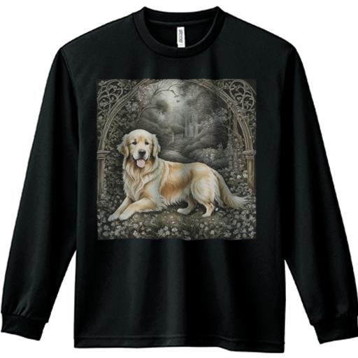 庭園 ゴールデンレトリバー アーチ 花 階段 ガゼボ 長袖Tシャツ 人間用 メンズ 秋春夏 プリント レジャー アウトドア カジュアル かわいい
