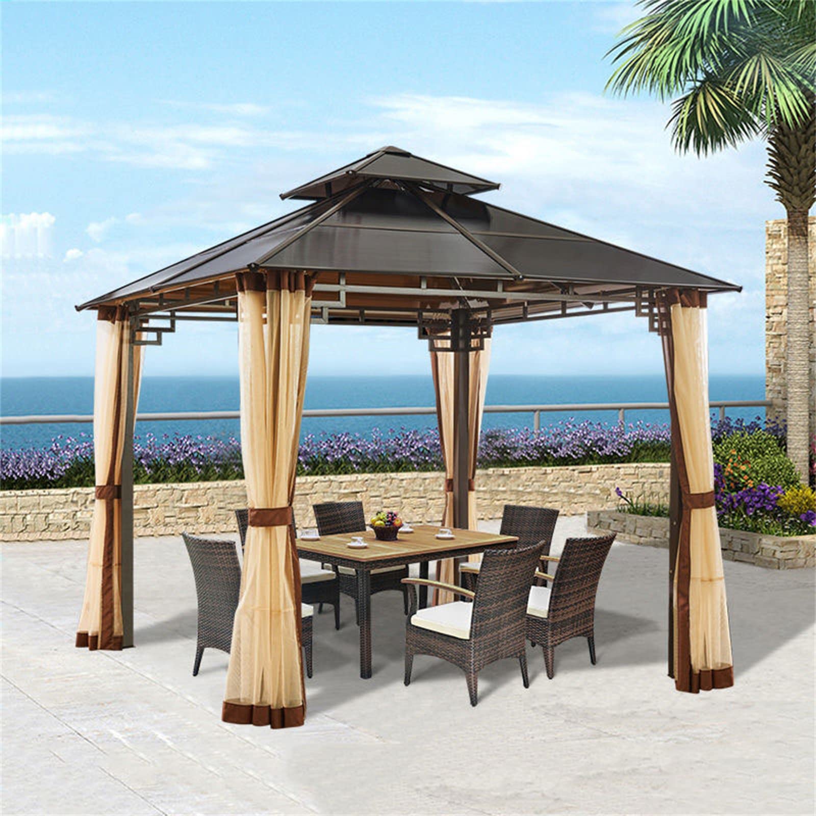 【特定商品!時間限定!ポイント6倍】10x10フィートの屋外ガゼボ、 蚊帳付きアルミニウム複合パネルダブルルーフトップ、庭、パティオ、芝生用の屋外断熱ハードトップガゼボ