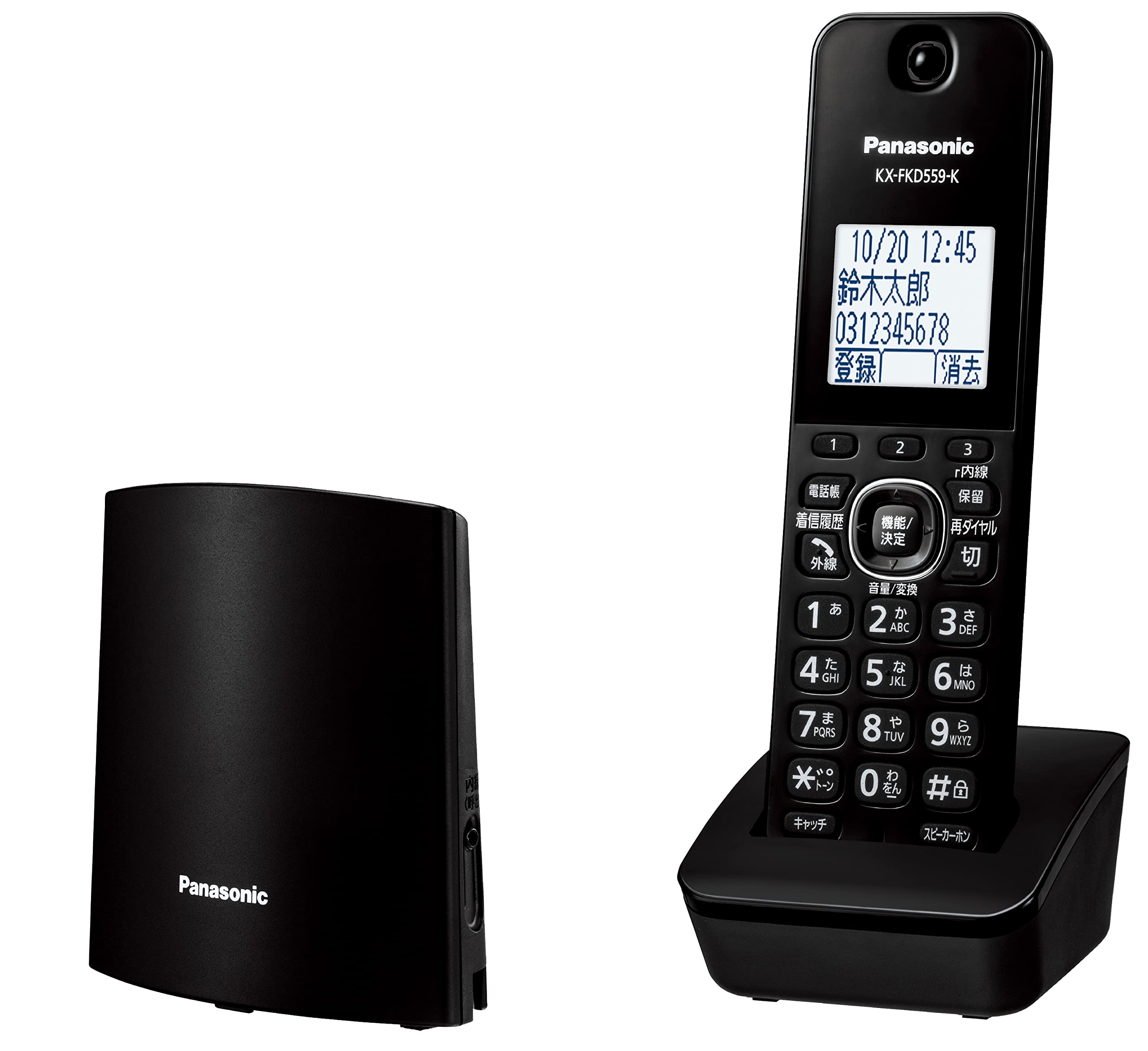 ・? 電話線は親機につなぐだけ家じゅう好きなところに置けるシンプル電話機・?電話線は親機につなぐだけ、宅内のお好きな場所に設置できる・?着信音が鳴る前に相手に警告メッセージを流す「迷惑防止」機能搭載・?子機が光って分かりやすい「着信お知らせLED」電話線は親機につなぐだけ※1家じゅう好きなところに置ける※2※3シンプル電話機 ・電話線は親機につなぐだけ※1、宅内のお好きな場所に設置できる※2※3。 ボックス型の親機を電話線に接続すれば、コードレス子機を使いたい場所に設置してお使いいただけます※2※3。 ・着信音が鳴る前に相手に警告メッセージを流す「迷惑防止※4」機能搭載。 着信音が鳴る前に自動で相手にメッセージをアナウンスします。着信中は呼出音と注意喚起のアナウンスを交互に繰り返し、電話に出ると通話内容を自動で録音します(1件、最大約10分)。 ・子機が光って分かりやすい「着信お知らせLED」。 着信中に光ってお知らせするLEDを子機に搭載。不在着信や留守録音があるときには、ゆっくり点滅して着信があったことをお知らせします。 ※1親機は電話機コードとACアダプターの接続が必要です。 ※2子機の充電台は電源コンセントへの接続が必要です。また、本機は防水仕様ではありませんのでキッチンや浴室などでは使わないでください。 ※3コードレス子機の使用可能距離は親機との間に障害物がない状態で約100 m。壁やドアなどの障害物がある場合、使用距離は短くなります。 ※4設定が必要です。ナンバー・ディスプレイサービスを利用している場合、付属子機の電話帳に登録されていない相手からかかってきたときのみ迷惑防止の機能が働きます。