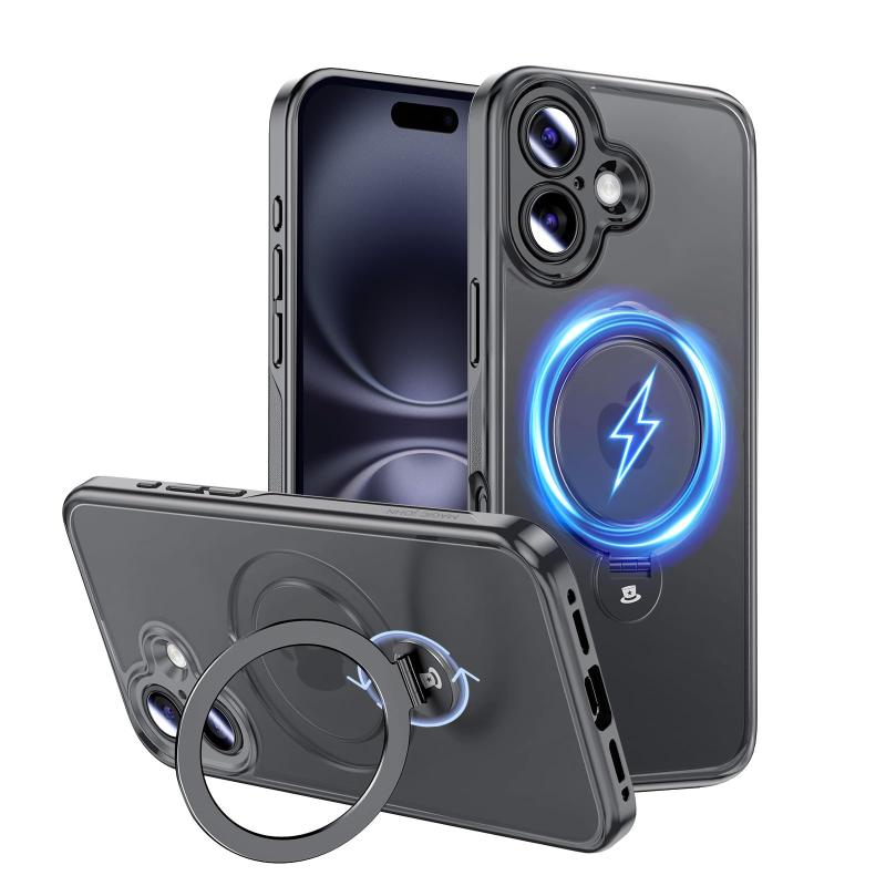 Magic John iPhone 16 Plus 用 ケース 耐衝撃 MagSafe対応 ワイヤレス充電 スタンド付き 360°回転 滑り止め いphone16 Plus 用 ケース 半透明 カメラ保護 TPU ズレにくい ホコリ付きにくい スマホケー